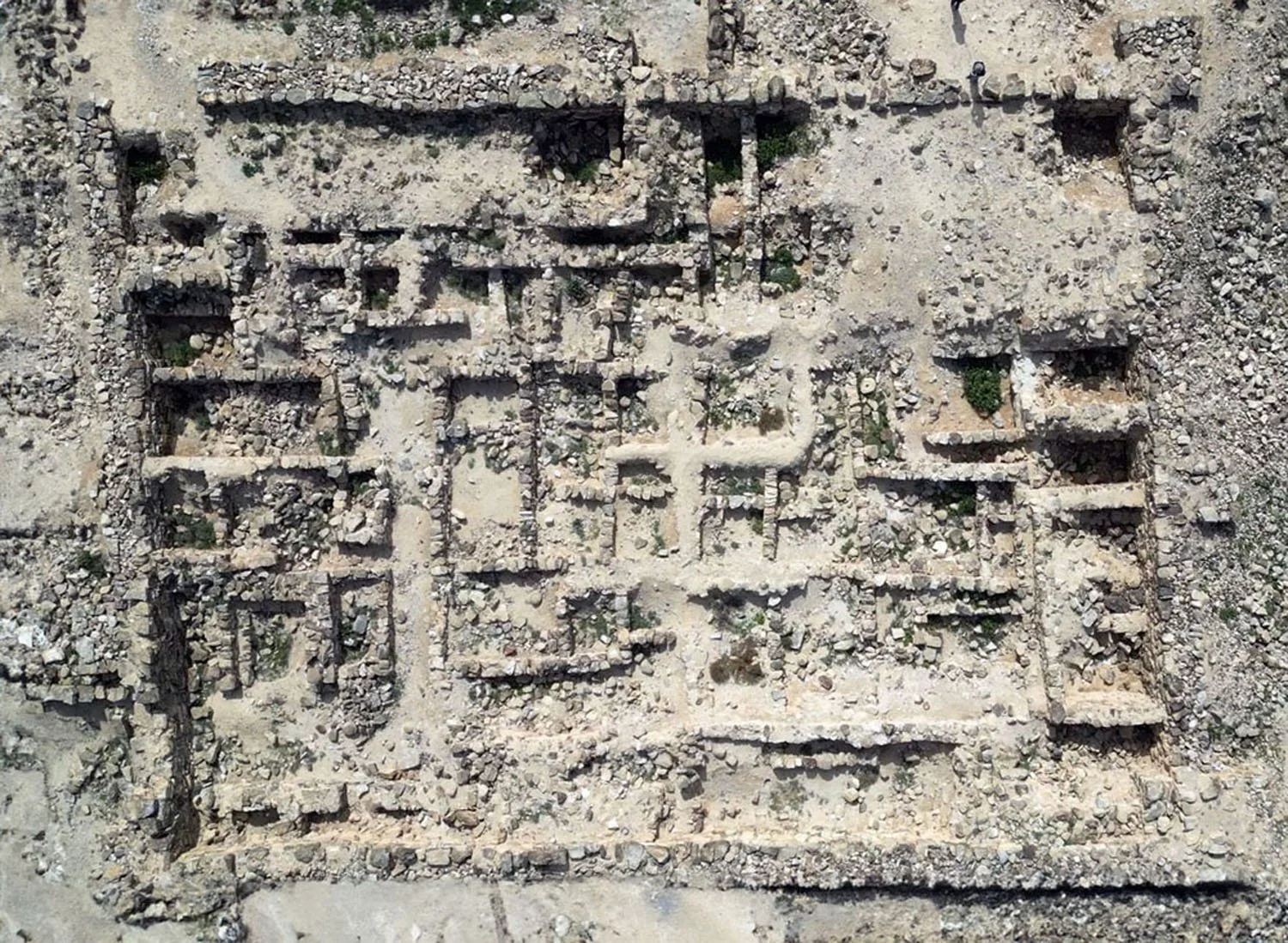 ABOVE RIGHT: Ázzā is a manipulated drone photograph of Horbat 'Uza (Uza ruins) overlooking the Qinah wadi close to Arad, a military fortress about a thousand years old, from 700 AD to 300 BC.