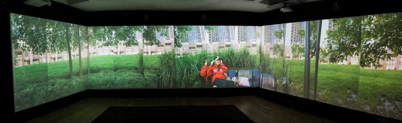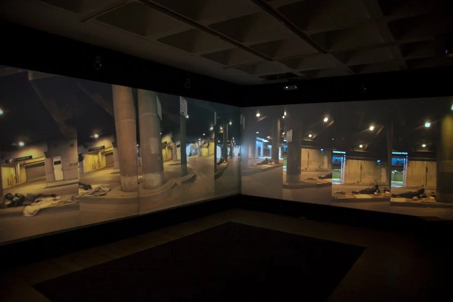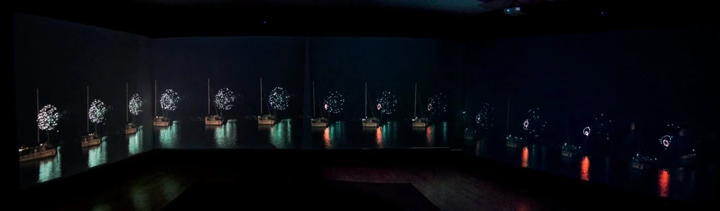 Panoramic, time delayed video installation, 88 minutes, varying dimensions
